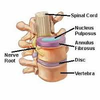 Spinal discs separate the vertebrae (bones) of the spine and are made up of two main parts; an outer layer of fibrous rings known as the annulus fibrosis, and an inner gel like structure known as the nucleus pulposus. The central nucleus acts as a shock absorber against everyday stresses, and impact, while providing a pivot point for spinal range of motion. The outer annulus of the disc connects to the top and bottom of each vertebra, acting as a ligament to help stabilize the spinal column. It is the interplay between these two parts that make the discs both resistant to and susceptible to injury.
